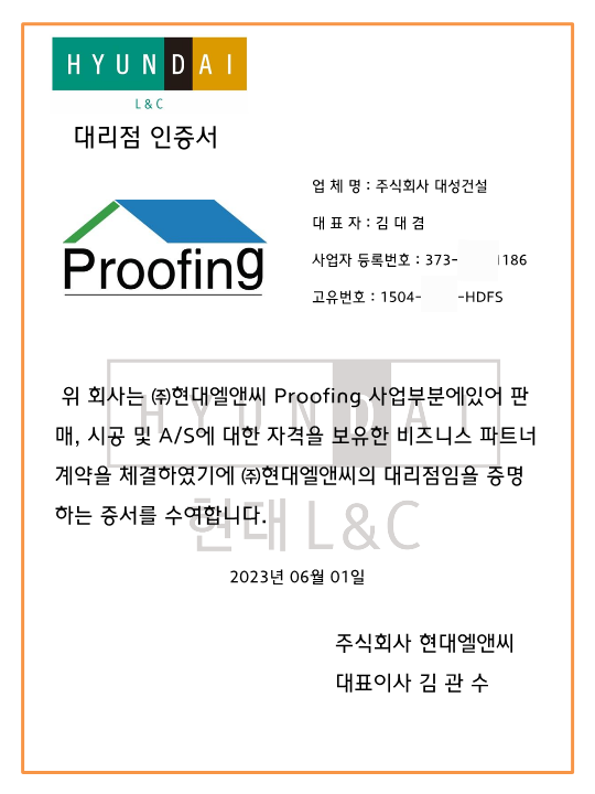현대엘앤씨 TPO 대리점 인증서