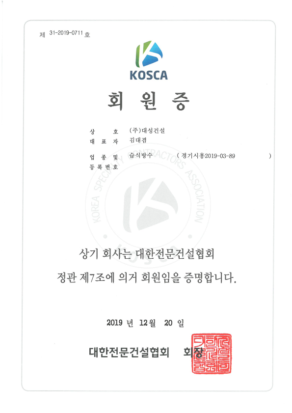 전문건설협회 회원증