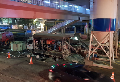 | 장점 | 타공정 비교시 공비 저가 중량이 가벼워 적용 범위 확대 압축강도 범위내 조정 가능 지반고결 일체화 FLOW 높음 |