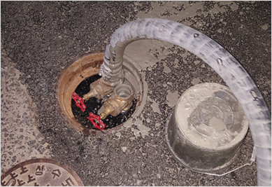 액상 형태로 채움으로써 다양한 구조물에도 적용이 가능하며 밀실하게 시공할 수 있다.
